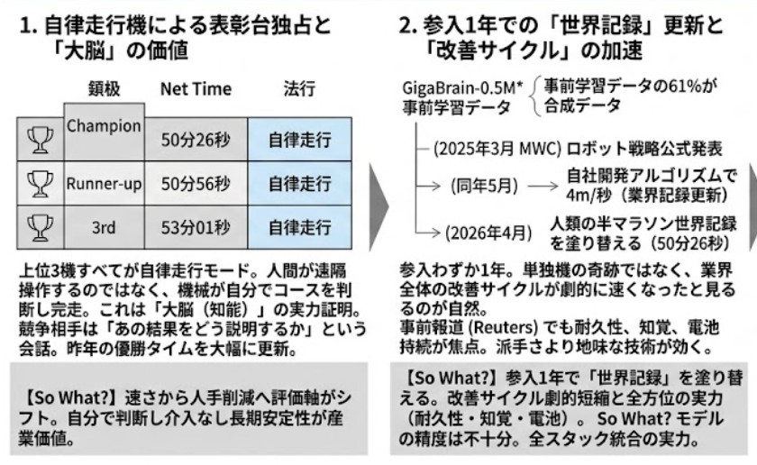 今回のロボットマラソンで、まさにそれが起きました。