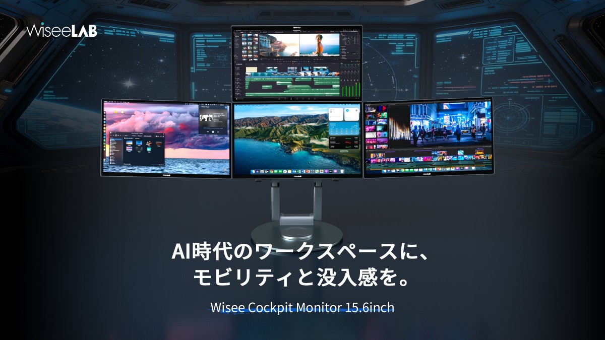 Wisee Cockpit Monitorは、「モビリティと没入感を両立した未来型作業スペース」というコンセプトのもと、生成AI時代の新しい作業環境を提案するために開発。この製品は、特許技術を10件以上搭載しており、従来のマルチモニターの常識を変える5つの特長があります。